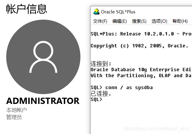 三、以管理员身份就可以在sql*plus中以操作系统认证的方式登录了。