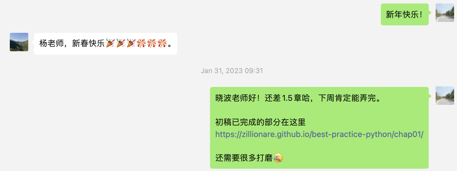 比写博客累多了。写博客一天能写上万字。不过,这种修改我其实内心是愉悦的。因为我做这本书的初衷,是希望能催生出更鲁棒的Python应用软件出来,自己的书当然更应该好好打磨。