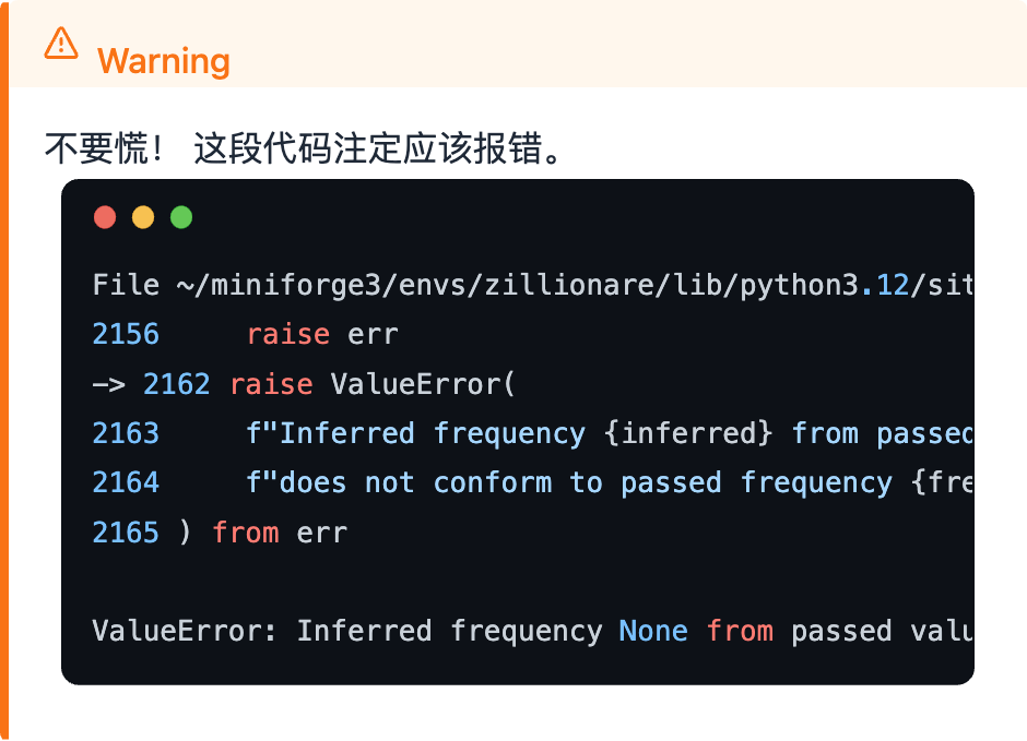 不出意外的话,意外就会发生了。Alphalens 会抛出一个异常: