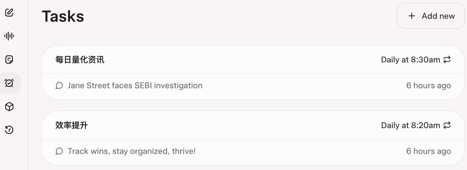 无他,只因我们差一个智能助手。如果有一个智能助手帮我们主动搜集、筛选,只把我们感兴趣的资讯,主动送到我们手上来,吃上信息特供,就不会有『营养』问题了。这方面,我们大概可以使用 Grok 订阅任务。