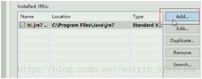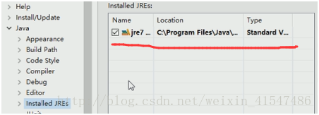 |--installed JREs: 可以指定多个jre环境,但是仅有一个是当前版本的