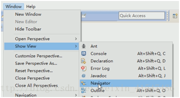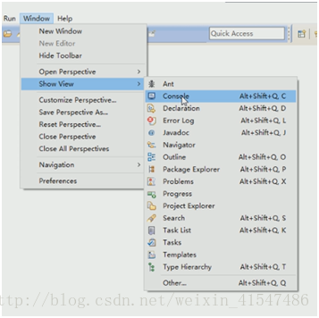 调用视窗 –--》window (窗口)---》Show View(展示视窗)--》选择要调用的窗口