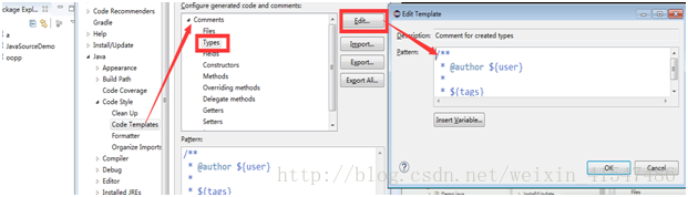 Windows—Perferenec -- Java—CodeStyle – Code Templates –Comments—Types