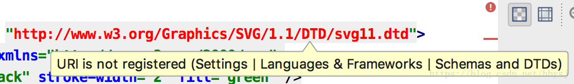 截图来的最直观,就直接上图看消息吧。这是在写SVG文档的时候,在文档顶部定义了该文档引用的DTD文件,但编辑器很不友好的报了提示。