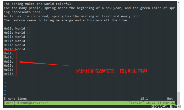 普通模式一般用于浏览文件,也包括一些复制、粘贴、删除等操作