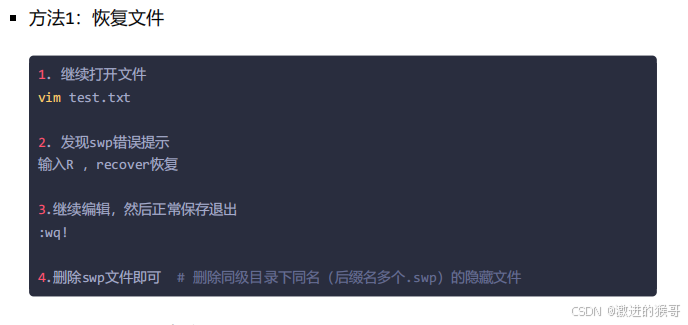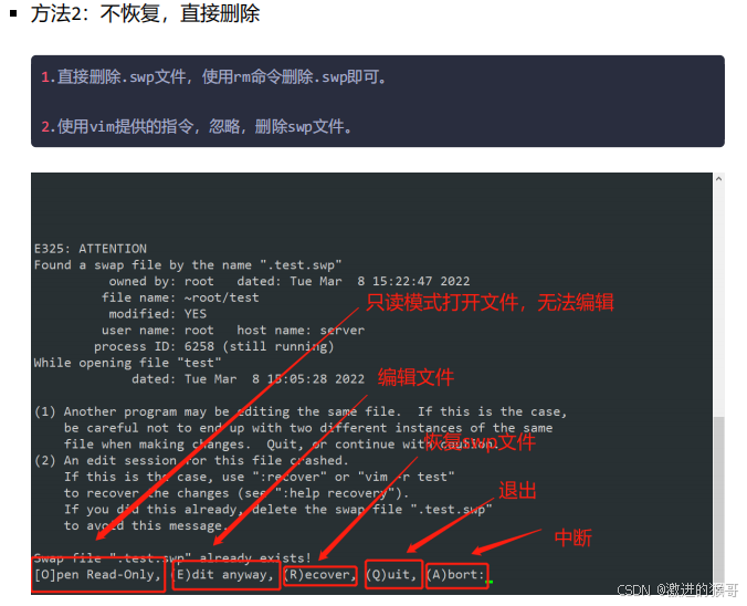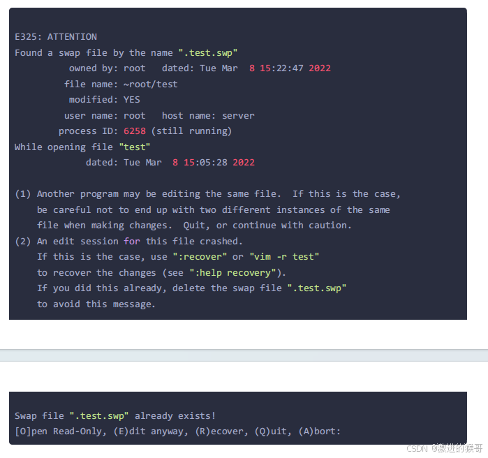 (1) 多人同时编辑了同一个文件;(2) vim 编辑文件被异常关闭(如ssh断连、系统故障)