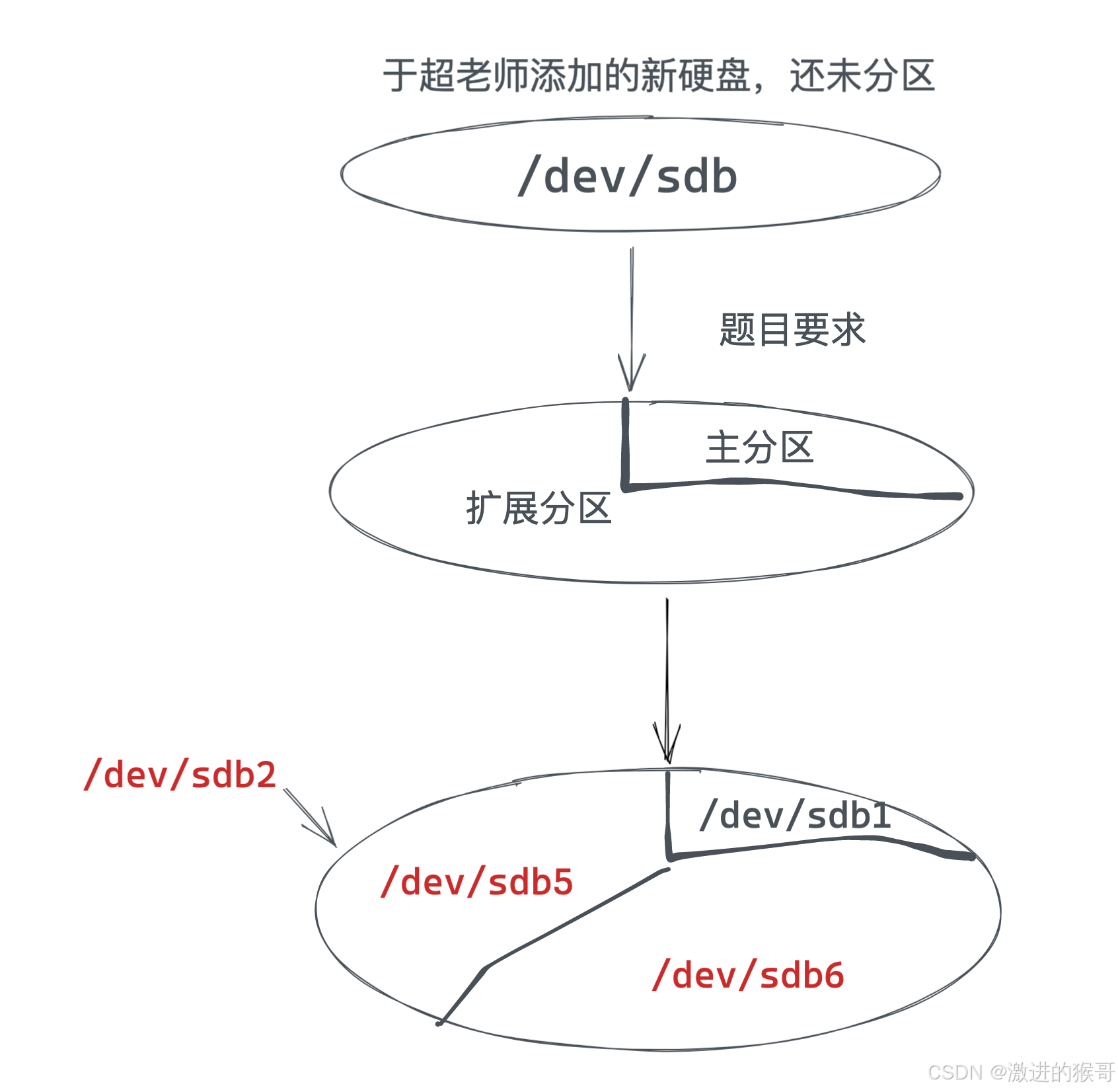 - 逻辑分区大小总和不能超过扩展分区大小,逻辑分区分区编号从5开始