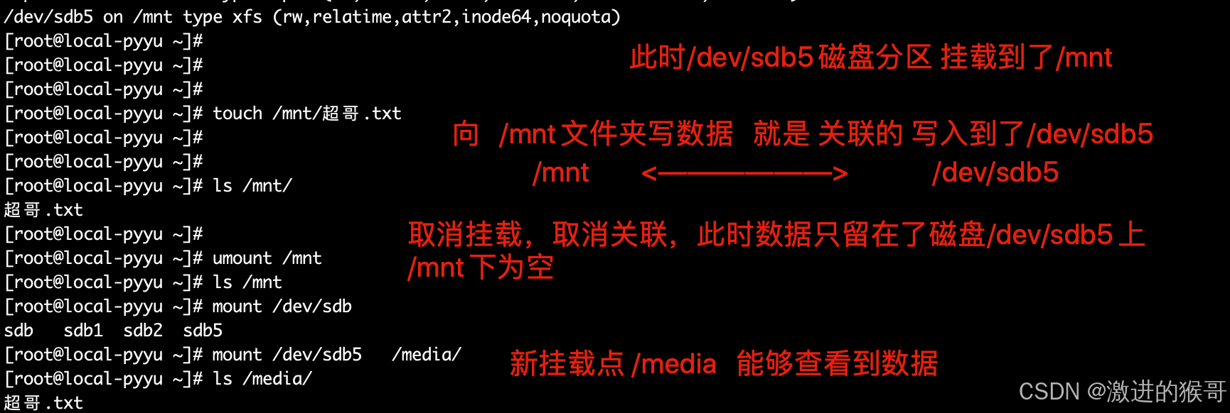 linux不像windows那样,设备插上,自动可以通过设备名,访问u盘或光盘的数据,得手动挂载后可访问。
