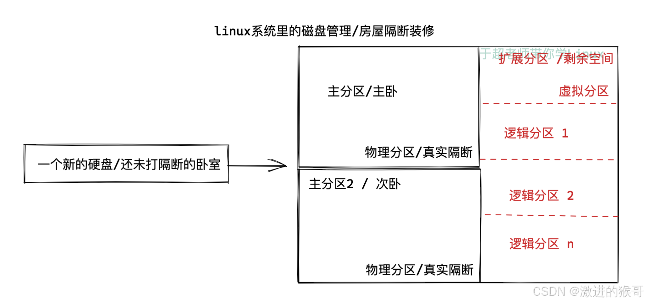 扩展分区也就是除主分区外的分区,但它不能直接使用,必须再将它划分为若干个逻辑分区才行。