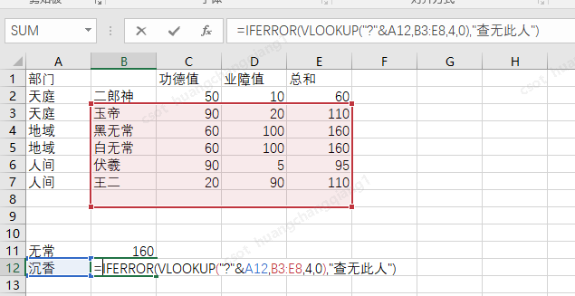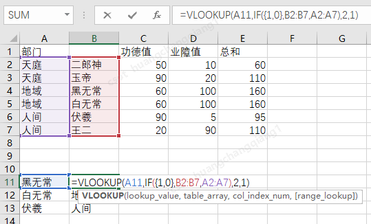 实际使用查找值不在查找范围首列;需要用if{1,0}构造2个数组,第一个数组作为匹配列,第二个作为取值列。