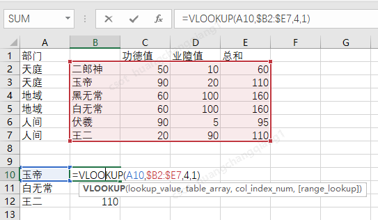 vlookup(查找值,查找范围,查找值在查找范围的列数,匹配类型)
