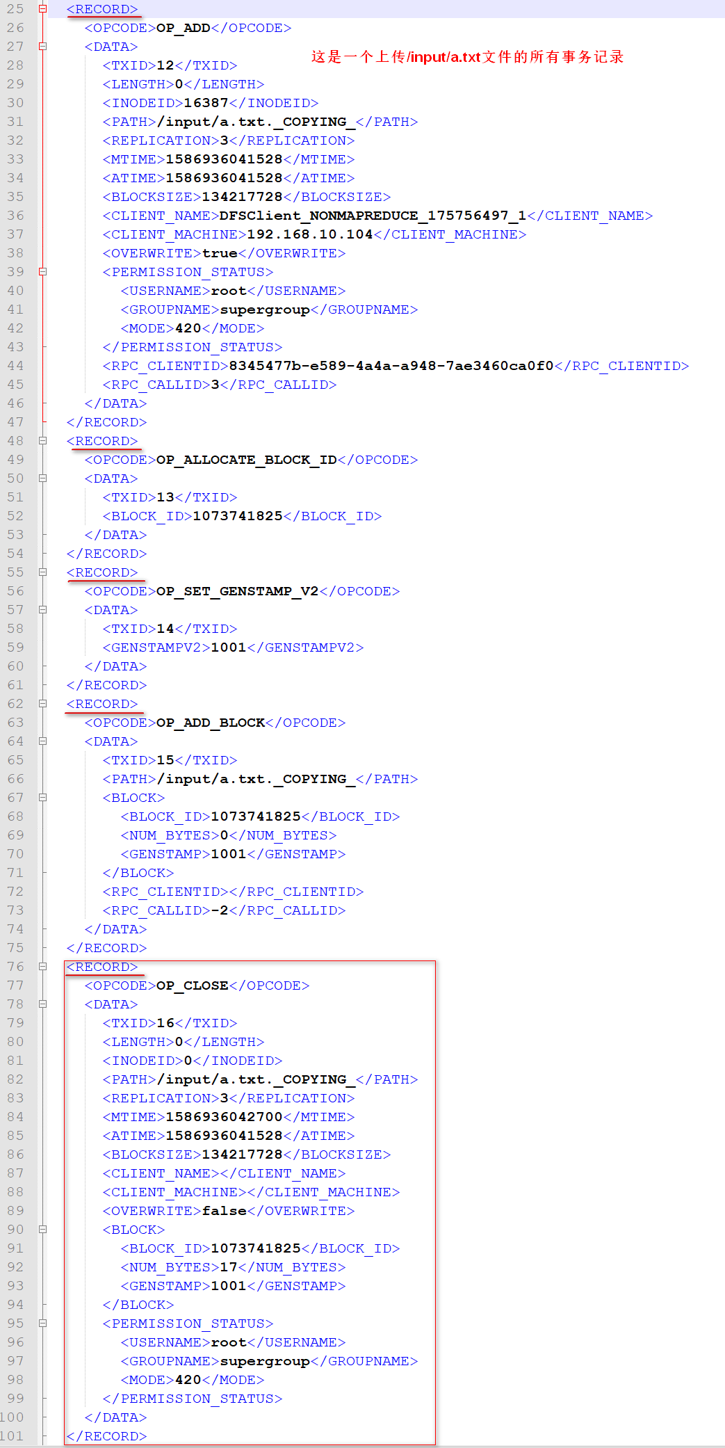 在NameNode启动的时候,首先加载本地磁盘上的fsimage文件,将一个完整的目录结构读取到内存中。然后再依次读取每一个edit log中的记录,在内存中进行推荐,对目录树结构进行推演。这样就可以得到上次关机的时候完整的目录树结构。
