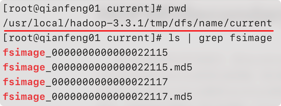 NameNode在内存中维护文件系统的目录树结构,而这样的目录树结构随着HDFS的重启不会丢失,也就说明NameNode会将其序列化到本地磁盘上,以文件的形式保存下来。这个文件就是fsimage文件。我们可以在NameNode所在的节点发现这个文件。