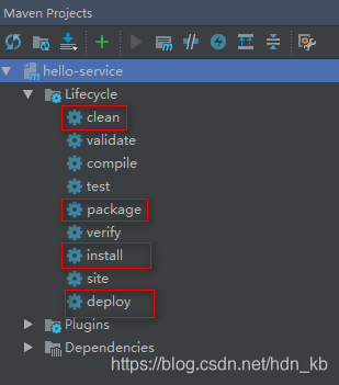 Maven的声明周期如下图: 其中红色框是最常用的: clean:有问题,多清理!package:打成Jar 或者 War包,会自动进行clean+compileinstall:将本地工程Jar上传到本地仓库deploy:上传到私服