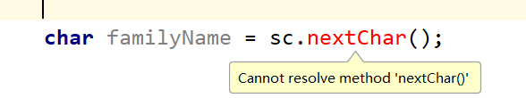 初学java的人都知道,通过Scanner键盘输入可以变量赋不同类型的值,int,float,double等都对应这不同的next方法,但是今天我发现Scanner不太好直接给char类型赋值,如下图: