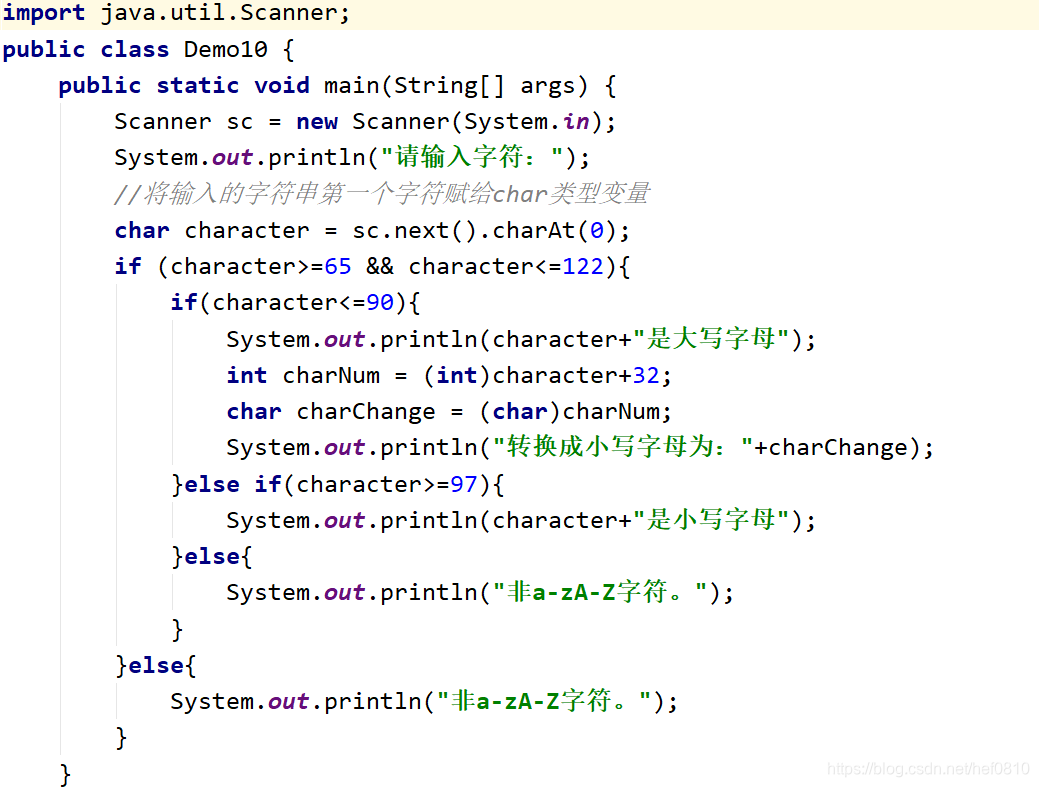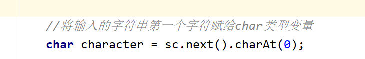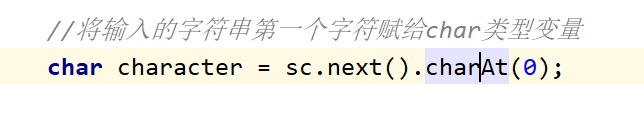 这说明Scanner中并没有nextChar()方法,遇到这种问题,一开始我也不会,我也是百度搜索才找到了解决方法,可以通过scanner对象的.next()先获得String字符串,在通过String字符串里面的.charAt(0)方法获得第一个字符,如下图
