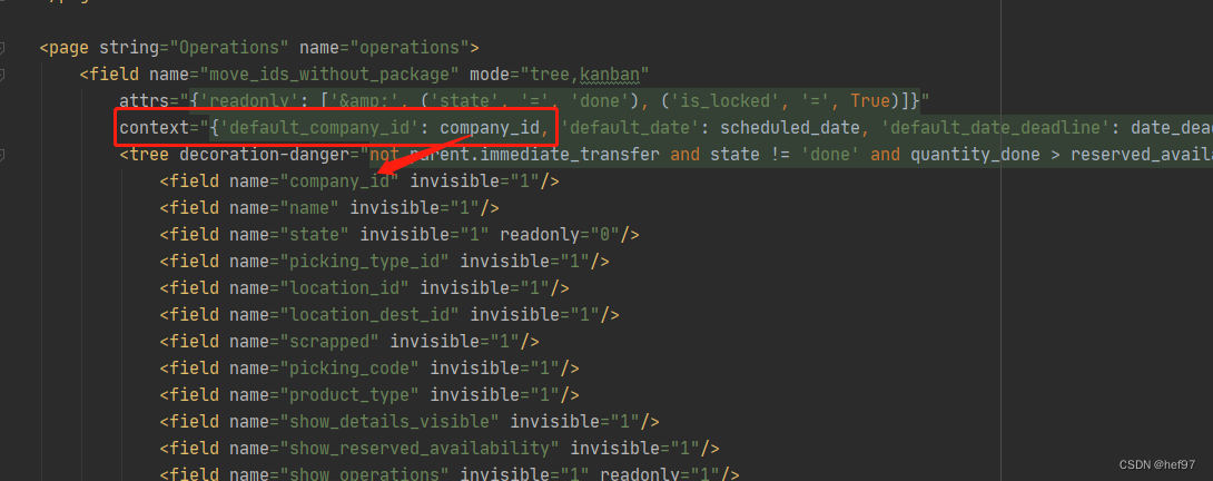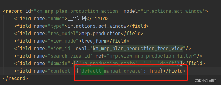 三、在xml的字段context里面给子表传递默认值