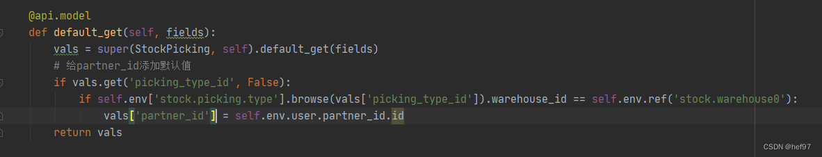 四、继承default_get()方法,此方法在表单