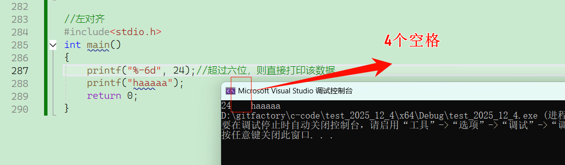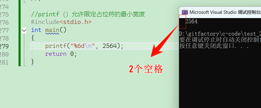 上面示例中,%6d表示占位符的宽度至少是6位,如果不满6位,则会在该值的前面添加空格,直至满6位