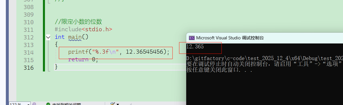 注意:在用%.nf(n表示正整数)时,会有四舍五入的效果