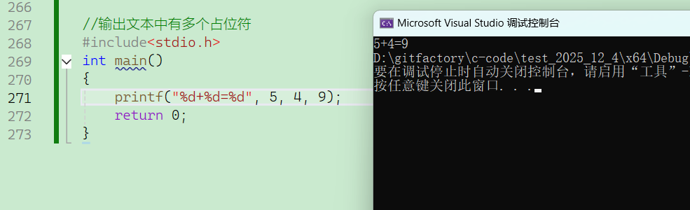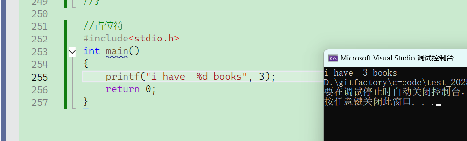 printf()的第二个参数就是替换占位符的值,在上述的示例中,3替换了%d,执行后的结果是: i have 3 books.
