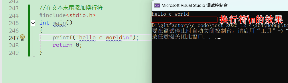 printf()函数不会自动在行尾添加换行符,运行结束后,光标会停在输出结束的地方,不会自动换行。