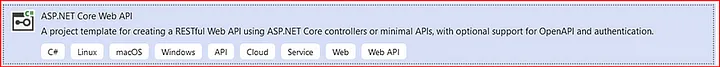 让我们进入 Visual Studio,通过选择模板创建一个 ASP.NET Core Web API 项目。