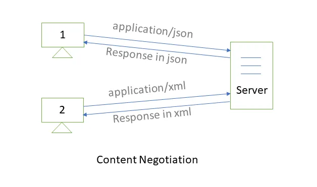 客户端向服务器发送 HTTP 请求,服务器返回“accept”标头。该标头指示客户端正在寻找的媒体类型或内容类型。服务器读取信息;如果服务器支持首选格式,则它会生成首选格式并将响应发送回客户端。