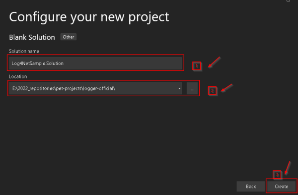 让我们创建一个空白解决方案,您可以将其命名为任何您想要的名称,但就我而言,我将其命名为“Log4NetSample.Solution”,不带引号。