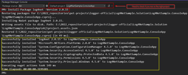 让我们首先创建控制台应用程序并通过 NuGet 包管理器安装 log4net。