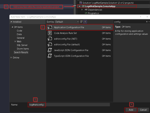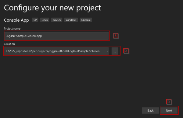 我将控制台应用程序项目命名为“Log4NetSample.ConsoleApp”(不带引号)。