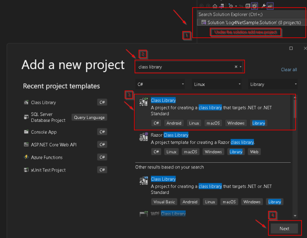 让我们添加一个新的类库,就我而言,我将其命名为“Log4NetSample.LogUtility”,不带引号。