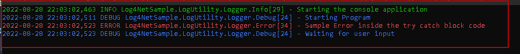 - 控制台附加程序 – 日志消息通常发送到控制台输出流。换句话说,您将能够立即在控制台窗口上看到日志。