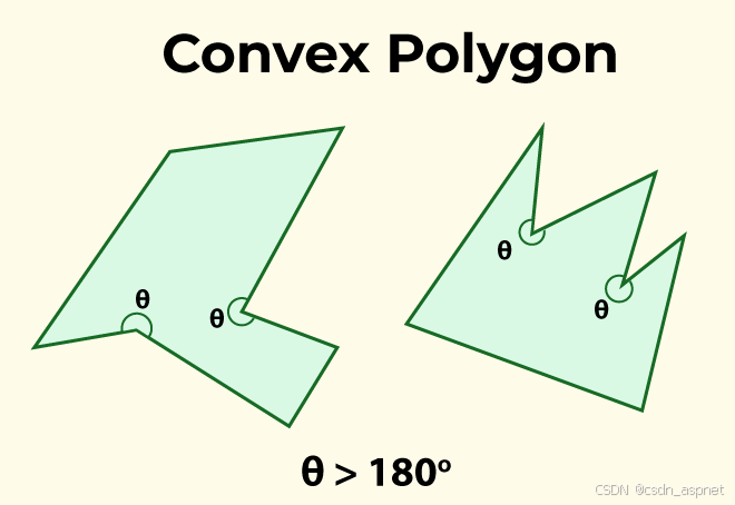 如果一个多边形的所有内角都严格小于180° ,或者边界上两点之间的线段没有延伸到多边形之外,那么这个多边形就称为凸多边形。