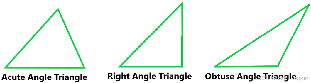 - 锐角三角形:角度小于 90° 的三角形称为锐角三角形。