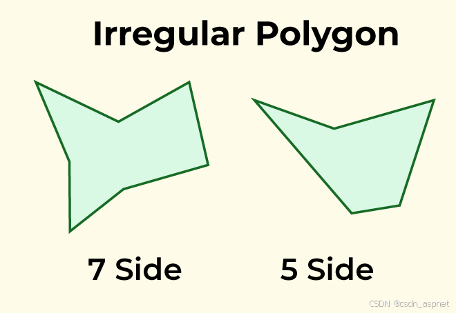 如果多边形的所有边和内角都不等长,则该多边形被称为不规则多边形。例如不等边三角形、矩形、风筝形等。
