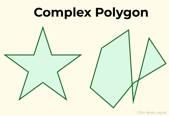 复杂多边形是一种二维几何形状,其边由直线段组成,并且可能存在自相交或孔洞。与不自相交的简单多边形不同,复杂多边形的边可以在其边界内相互相交,从而形成更加复杂和不规则的形状。