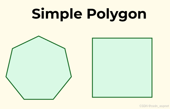 简单多边形是由不相交的线段构成的封闭几何形状。简单来说,边不相交的二维图形被称为简单多边形。常见简单多边形包括三角形、正方形、长方形、五边形、六边形等等。