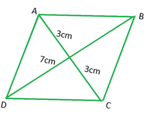 问题 2:构造一个菱形 ABCD,其中 AC = 6 厘米,BD = 7 厘米。