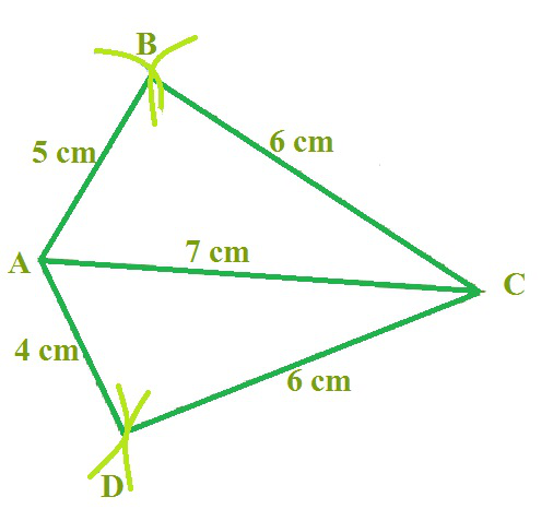 AB = 5 厘米,BC = 6 厘米,CD = 6 厘米,AD = 4 厘米,AC = 7 厘米