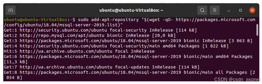 sudo add-apt-repository“$(wget -qO- https://packages.microsoft.com/config/ubuntu/18.04/mssql-server-2019.list)”