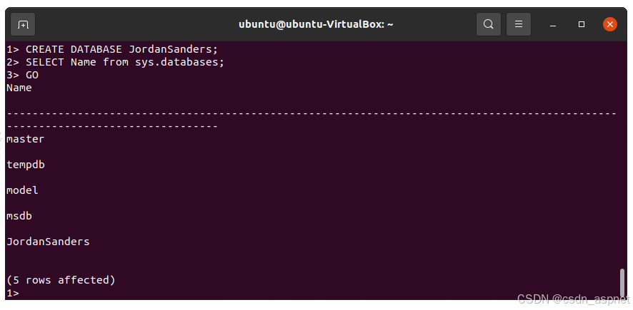 要在 Ubuntu 上创建 SQL Server 数据库,请运行以下命令。