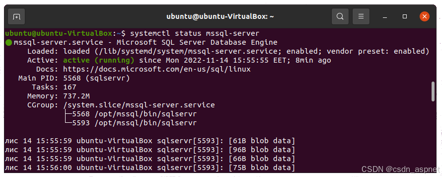 运行以下命令检查mssql服务状态。