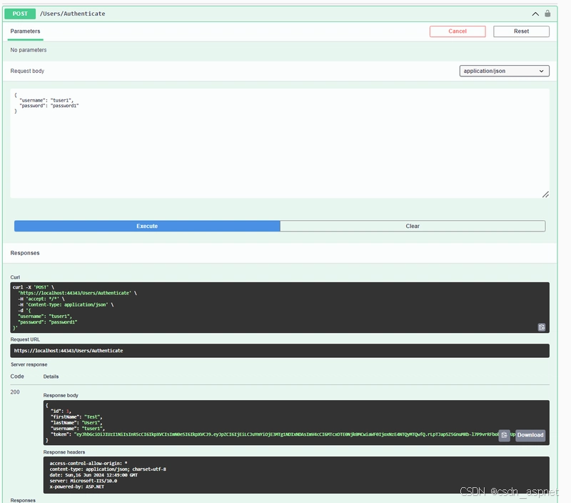 • 实现AuthenticateAPI 来验证用户并生成令牌。