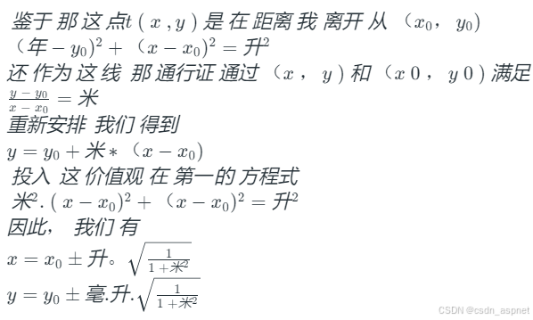 给定二维点 p(x 0 , y 0 )的坐标。找出距离该点为 L 的点,连接这些点所形成的直线的斜率为M。