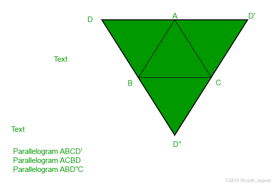 给定三个坐标点 A、B 和 C,求缺失点 D,使得 ABCD 可以构成平行四边形。