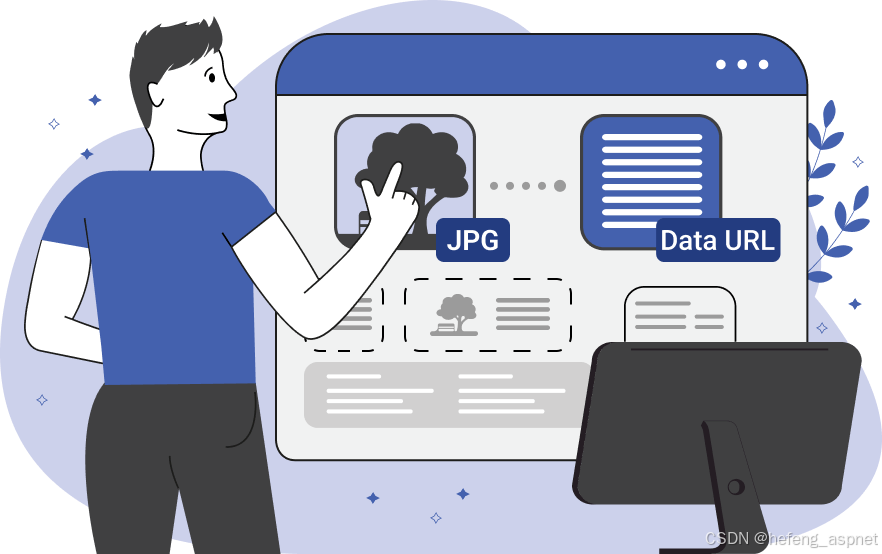 這種表示方法叫做data URI schema,是新一代瀏覽器支援的檔案資料表現格式,允許在網頁裡以字串形式直接內嵌圖檔、CSS檔案,進而達到以下好處:
