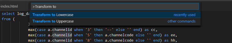 按ctrl+shift+p, 在框中输入 >Transform to ,将会出现两个,一个是转换成小写,一个是转换成大写。