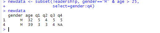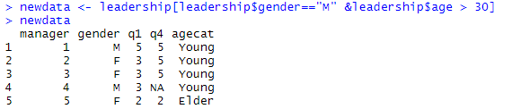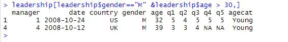 newdata <- leadership[leadership$gender=="M" &leadership$age > 30,]