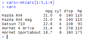 newdf <- sqldf("select * from mtcars where carb=1 order by mpg")